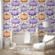 おもしろいパンプキンパープルとオレンジの壁紙。シームレファンキーームパターン。ハロウィーンをテーマにした壁のカバー。壁、引き出しライナー、芸術、工芸品に最適。想像力を輝かせなさい。