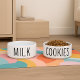 このミニマリストのドッグボウルは白いセラミックはっきりしたベースの上に黒い文字でクッキーという言葉を特徴としている。愛犬家用モダンに設計され、スタイルとユーモアを機能的なお洒落作品に融合させる。グルメの姿勢を持つ犬やペットの親のための完璧なトレンディーを愛し、控えめなアクセサリー。「ミルク」の文字とマッチする水器は別々に用意され、外観を完成させる。