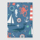 このファブデザインは、海航海の洋生活、灯台、鯨、いかり&;のトンとのテーマを特徴とする濃い航海の青の背景にフラグが表示されます。