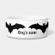 可愛いハロウィーンのブラックこうもりのシルエットは、犬の名前でパーソナライズできるドッグフードのボウルを囲んでいる。