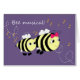 紫色の背景に愛らしいハチと音楽テーマのノートカード。内部は自分空白のの手書きメッセージを追加するためである。ノートまたはグリーティングカードサイズを選択する。両方とも来白い封筒を持つ。