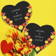 ホワイト春水の色のフローラ結婚のナプキンとおもしろいの事実パーソナライズされた。赤エレガントと黄色の色合いの手書きチューリップと緑の植物要素を備えたカラフルデザイン。素朴なボホ春の結婚式。このアイテムは私の赤と黄色の春チューリップのコレクショ結婚ンの一部である。