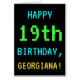 このシンプルおもしろい誕生日グリーティングカードデザインには「HAPPY 19誕生日、GEORGIANA!」のようなメッセージが載っている。また、1980年代から1990年代初期のレトロまたはクラシックのコンピューターゲームの外観を彷彿とさせるおもしろいでピクセル化された外観を特徴としている。正面の名前と内側のメッセージは可能であパーソナライズされたる。それは彼らの19歳の与え誕生日であ祝り、クラシックのコンピュータゲームを楽しんで誰かに送信され遊るか、または誰かに送信され得る。[~Z0000099]