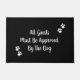 スクリプトの文字を持つおもしろいウェルカムマットでゲストを家に迎えお洒落て、「すべてのゲストは犬に承認されなければならない」と白い前足のプリントを反対側の角に。黒の背景色は、を選択し、カラーピッカーから背景カスタマイズ色を選択することによって、他の色に違う編集することができる。必要な文字をもし編集する離れことも書可能。この形式は犬のオーナーに良い贈り物だ。