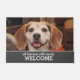 おもしろい犬写真スナックスを持つすべての人間の歓迎 ドアマット