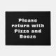 白い文字のドア・マットとの黒- "ピザおよび酒宴"のおもしろいな玄関マットによって戻して下さい