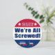 2016年選挙の候補者に満足していない?じゃあこのデザインは君のためだ。この円形のデザインは、赤、白、青のセクションを備えている。トップレッドのセクションは2016年の2つの星の間に青で縁取られた白の星を持っている。中央の白い部分には、青い文字で赤で縁取られた「我々は全てねじ込まれた!」と書かれた文字があり、下の青い部分には民主党員スタイルロバと共和党スタイル象が白で縁取られている。