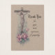 この困難な時期に、家族や友人表現の支援に対して、この美しいカトリックのお悔やみサンキューカードに感謝の意を表します。これははりつけにされ伝統的たキリストの像で下にピンクのバラが咲いていますすべての文字、フォント、イメージは、次のようになります。