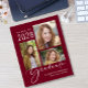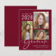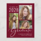 お手頃価格のバーガンディーレッドの卒業発表カード。3枚の写真を並べたコラージュと、エレガントな白いスクリプトで「卒業生」と記載。卒業生の名前、卒業年度、学校または大学名を現代的なタイポグラフィーで追加できます。