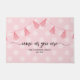 このウェルカムマットは、おもしろいピンクの背景エレガント、書道の台本、あなたの家族の名前を備えている。