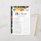 誰が母親を知っ最高のている?これらの質問に答えて見つけ出す! |これらのおもしろいと赤よくはしゃぐちゃんシャワーゲームカードをイベントに追加。このカスタマイズ可能な「誰が母親を知っ最高のている」ゲームカードは、レモンとオレンジの水色のイラストレーションを備えている。質問を追加してカスタマイズする。この柑橘系の赤ちゃんシャワー推測ゲームカードは、夏の赤ちゃんシャワーやベビーパーティーに最適。