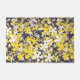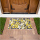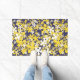 からし黄色、白、金ゴールド、ネービーブルー、花 ドアマット