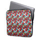 光沢のある赤いさくらんぼ、セージの緑の葉と青い格子状のラップトップスリーブの水の色の愛のイラストレーションパター市松模様にン。