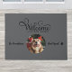 このカスタム写真の犬のマットは、犬好きな人へのプレゼントに最適です。このデザインは、「私たちの家へようこそ」という文字、あなたの名前と犬の名前を入れる場所、そしてあなた自身の写真を入れるスペースが付いています。お楽しみください!