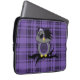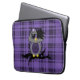 ネオプレンカスタム13インチラップトップスリーブで、ベクターアートデザインの可愛い紫、灰色、黒のエモフクロウの髪と紫のスカル弓の枝に座ってハートを壊し、紫の格子模様の背景。