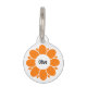 この明るいペット用IDタグは、背面にペットの名前や重要な連絡先情報を記載できる、美しいオレンジ色の花のデザインが特徴です。
