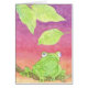 パプルピンクのオレンジ色の空に向かうかわいい緑のカエル