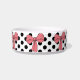 かわいいガーリーピンクの弓と黒の水玉模様をオンホワイト ボウル