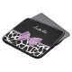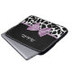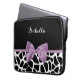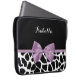 白と黒の可愛いキリンプリント15インチのラップトップスリーブにラベンダーパープルガーリーリボンを弓に結びフェミニン付ける。名前を追加しかわいらして、このアニマルプリントデザインをカスタマイズする。フラットプリント画像、実際の弓ではない。