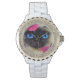 かわいいシャムエレガント猫ピンクリボンイラストレーション 腕時計