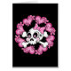 可愛いスカルとクロスボーンにピンク点々のあるのハートと花に囲まれたポルカボウ。