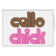 ピンクおよびチョコレート色のチェロのひよこ音楽ロゴはあらゆるチェロのミュージシャンのための重大なギフトを作ります。