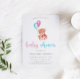 かわいいテディベア赤ちゃんシャワー水色甘い 招待状 (正面/裏面)
