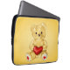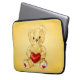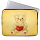 可愛いテディラップトップスリーブふわふわの黄色いテディが赤いハートを持つ。