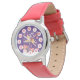 かわいいジャンピングトナカイと贈り物パープルブルー白と赤のクリスマスウォッチ。シンプル澄ん番号ウォッチ顔オーバーレイそのもし写真は、代わりに個人的な写真に背景を変更することができる。Sarah Trettによる設計。
