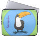 かわいいハッピートゥーカンブルーグリーン漫画イラストレーション ラップトップスリーブ
