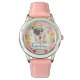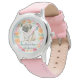 かわいいパグの子犬と水色の花名前をカスタムする 腕時計