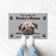 お気に入りの犬やペットでこの楽しい玄関マットをパーソナライズ。既存のグラフィックをそのままにするか、自分のものに置き換え。注文時にテキストを自由に編集できます。
