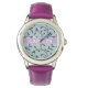 かわいいパステルターコイズフローラルパターンモノグラム 腕時計