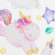 NewParkLane – 小さなユニコーンのパターンを特徴とする可愛い壁紙パステルお洒落カラーのハート、星、サングラスなどの属性。かわいいデザイン子供部屋や子供や遊ベッドルーム。