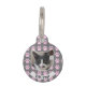 可愛いカスタマイズ可能な写真と文字猫ペットラベルピンクの手のプリントとライトグレー。ペットの写真を追加して作ユニークる。背中に住所と電話番号を追加する猫好きに最適な贈り物