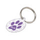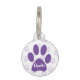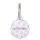 犬や猫の可愛いペットラベルは、パープルの柄が2色ある。ペットの名前と電話番号でパーソナライズ。