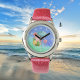 かわいいビーチ格言ピンクflamingo追加の名前の子供 腕時計