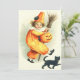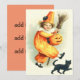 この与えハロウィンは、あなたのトリックと一緒にお菓子を。このプリントは運、かわいい小さなピエロが微笑むジャッキの提灯、手に箒、足に黒猫の姿を描いている。