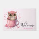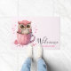 かわいいピンクのフクロウをカップウェルカム ドアマット