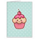 ミントブルーの水玉模様パターンの背景とかわいいスタイルの可愛いピンクのカップケーキ。