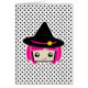 かわいいおもしろいかわいいピンク髪の魔女ノートカード。素晴らし子供へハロウィンや誕生日、特別な機会のための大人。