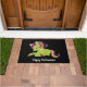 ハッピーハローウィンドアマットフランケンシュタインスタイルユニコーンのイメージ。紫と緑。不気味かわいい