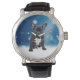 かわいいフランスのブルドッグ雪スターブルークリスマス 腕時計