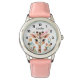 ここには子供のための愛らしい腕時計、特に彼もしまたは彼女が時間を伝え学ていること。センターはカラフルの花に囲まれた可愛い幸せキリンを特徴としている。画像の上にあなたの子供の名前である。黒い数字は時計の簡単を表示し読ます。すべて白い背景に置かれる。