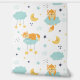 可愛いベビーキツネムーンスターズ子供パターン壁紙お洒落白い背景に雲と月と星がアクセントのかわいいキツネが特徴。完璧な子供へベッドルーム、子供部屋の装飾、プレイルーム、ホームデコール、オフィスとパーティーの装飾。Evco Studio www.zazzle.com/store/evcostudioによって作成