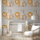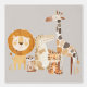 この壁紙は赤ちゃん動物と可愛いサファリテーマを特徴とする。可愛いサファリの動物の一つ、ライオンの子、メルカット、ワニ、タイガーの子、キリンが一緒に立ち、柔らかいスモーキーのベージュの背景の上に並んでいる。ベビー子供部屋、キッズルーム、保育園に最適。