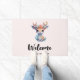 かわいいベビー鹿と〔雄ジカの〕枝角と花 ドアマット