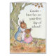 いとこのための「おもしろいを学校の最初の日に持つ」グリーティングカード,小さなマウスのマウズホールのコテージ離れは、学校の最初の日のためにオフに設定。このデザインはジュディ・アダム色彩の鮮やかソンの手の水彩イラストレーションから来ている。メッセージ内でパーソナライズできる。