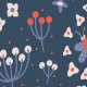 かわいいモダン花蝶の青い白いパターン 壁紙
