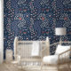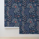 可愛モダンい花蝶ブルーホワイトパターンピール&スティック壁紙は青い背景に蝶とトンボを持つ可愛い白と赤の花の花柄を特徴とする。ホームデッキ、バスルーム、壁のアクセントとトリートメント、オフィスの装飾とパーティーの装飾に最適。Evco Studio www.zazzle.com/store/evcostudioによって作成